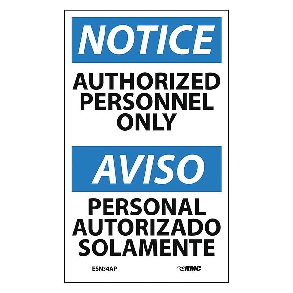 Authorzed Personnel Only (Blngual),PK5, Package Quantity 5