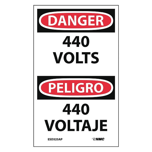 Bilingual Label,440 Volts,PK5, Package Quantity 5