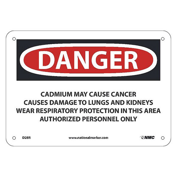 Danger Cadmium May Cause Cancer Causes Damage To Lungs and Kidneys Wear Respiratory Protection In This Area Authorized Personnel Only