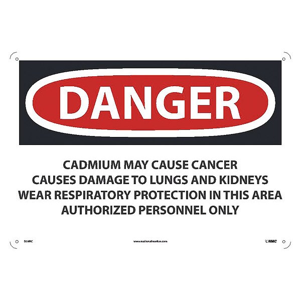Danger Cadmium May Cause Cancer Causes Damage To Lungs and Kidneys Wear Respiratory Protection In This Area Authorized Personnel Only