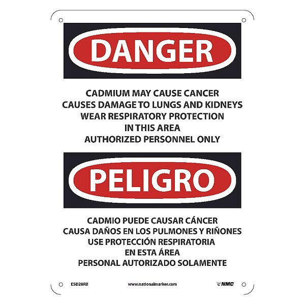 Danger Peligro Cadmium May Cause Cancer Causes Damage To Lungs and Kidneys Wear Respiratory Protection In This Area Authorized Personnel Only (bilingual)