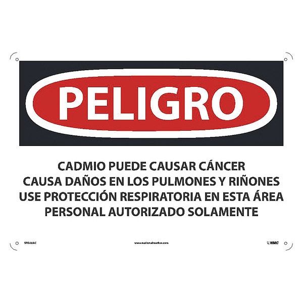 Peligro Cadmium May Cause Cancer Causes Damage To Lungs and Kidneys Wear Respiratory Protection In This Area Authorized Personnel Only (spanish)