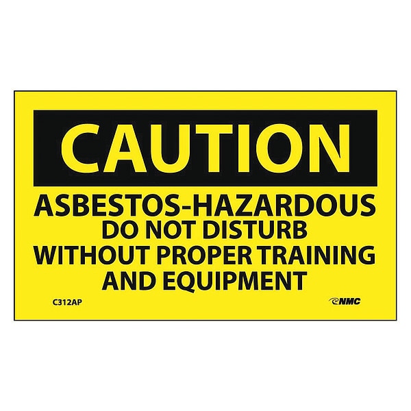 Caution Asbestos Hazardous Need Proper Training Label, Pk5