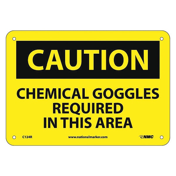 Caution Chemical Goggles Required In Thi, 7 in Height, 10 in Width, Rigid Plastic