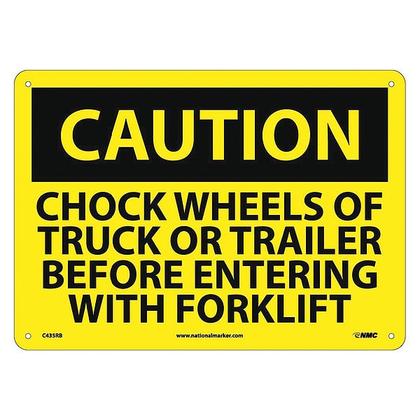 Caution Chock Wheels Before Entering With Forklift Sign, C435RB