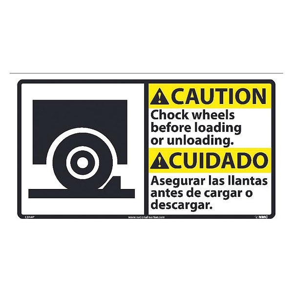 Caution Chock Wheels Sign - Bilingual, CBA4P