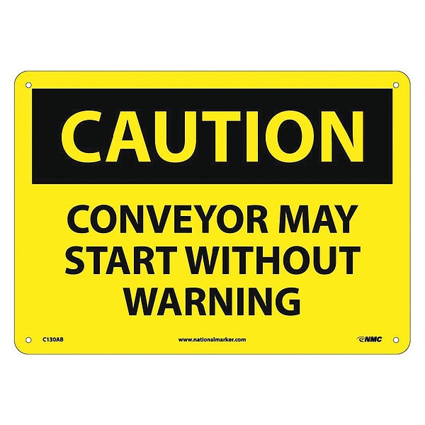 Caution Conveyor May Start Warning Sign, 10 in Height, 14 in Width, Aluminum