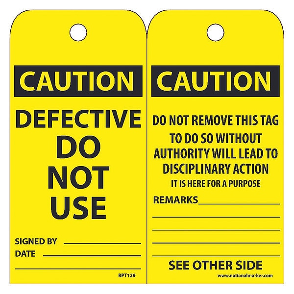 Caution Defective Do Not Use Tag,PK25, Package Quantity 25