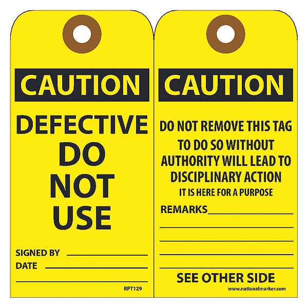 Caution Defective Do Not Use Tag,PK25, Package Quantity 25