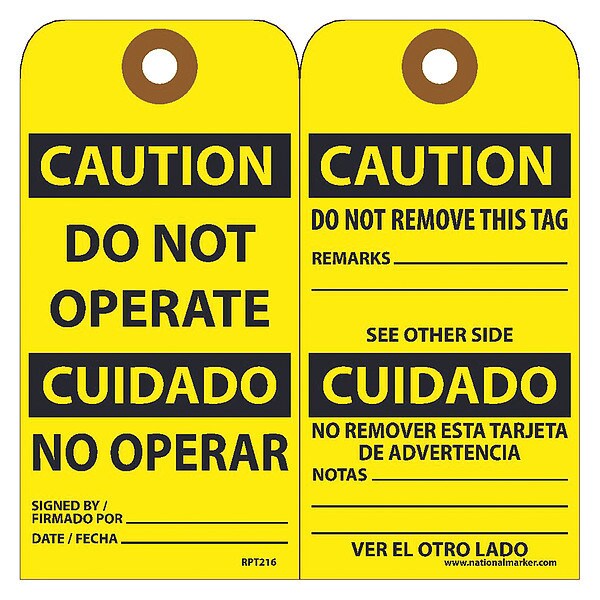 Cauton Do Not Operate Blngual Tag,PK25, Package Quantity 25