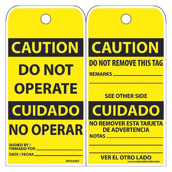 Cauton Do Not Operate Blngual Tag,PK25, Package Quantity 25
