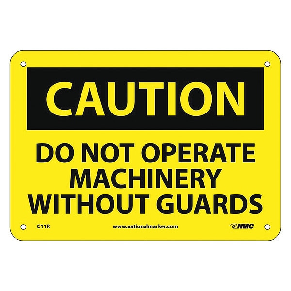 Caution Do Not Operate Machinery Without, 7 in Height, 10 in Width, Plastic, Rectangle, English