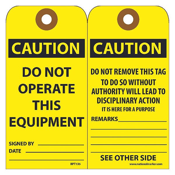 Caution Do Not Operate This Equipment Tag, Pk25