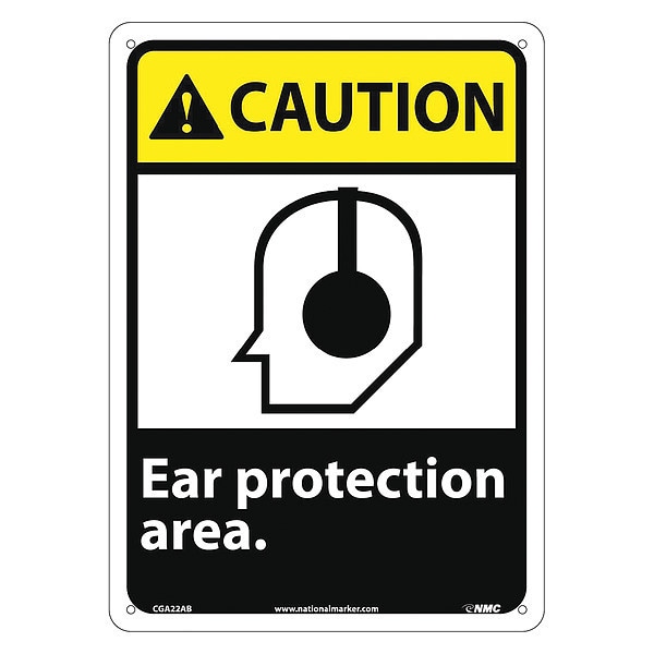 Caution Ear Protection Area Sign, 14 in Height, 10 in Width, Aluminum (Discontinued)