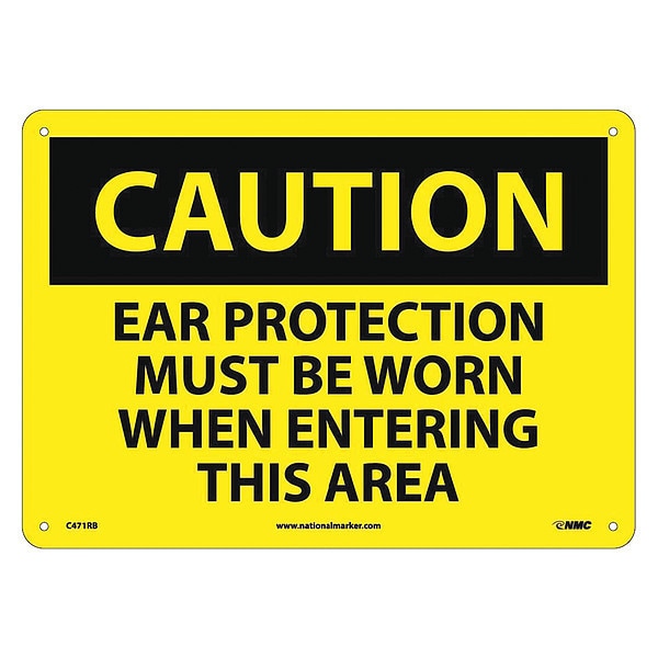 Caution Ear Protection Must Be Worn Sign, 10 in Height, 14 in Width, Rigid Plastic (Discontinued)