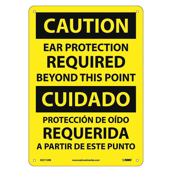 Nmc Caution Ear Protection Required Sign, Bil, 14 in Height, Plastic, Rectangle, English, Spanish ESC713RB