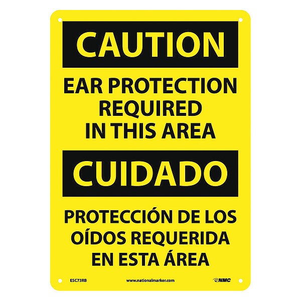 Caution Ear Protection Required Sign, Bil, 14 in Height, Plastic, Rectangle, English, Spanish (Discontinued)