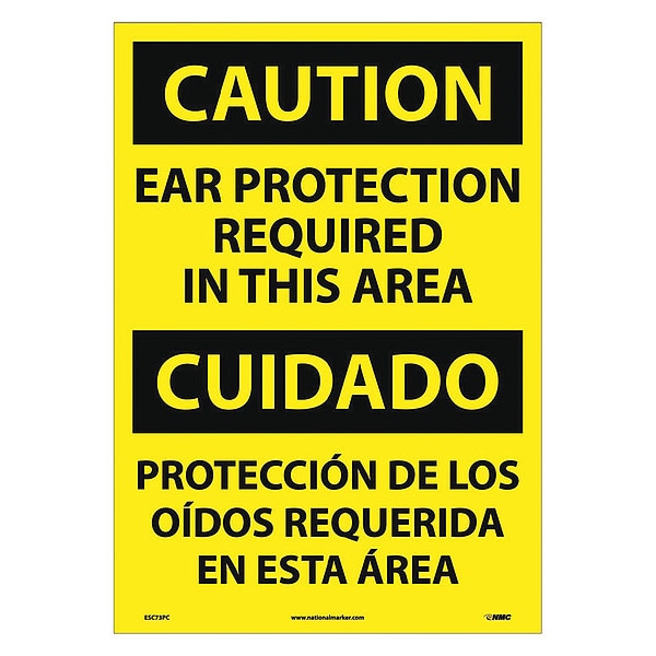 Caution Ear Protection Required Sign, Bil, 20 in Height, Vinyl, Rectangle, English, Spanish (Discontinued)