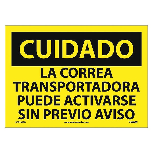 Caution Equipment Safety Sign, Spanish, 10 in Height, 14 in Width, Pressure Sensitive Vinyl (Discontinued)