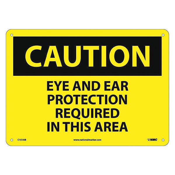 Caution Eye And Ear Protection Required, 10 in Height, 14 in Width, Aluminum, Rectangle, English