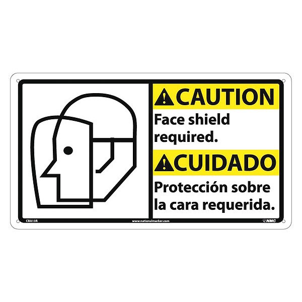 Caution Face Shield Required Sign,Biling