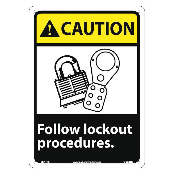 Caution Follow Lockout Procedures Sign, 14in Height, 10in Width, Plastic, Rectangle