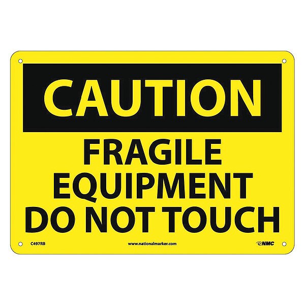 Nmc Caution Fragile Equipment Do Not Touch S, 10 in Height, 14 in Width, Rigid Plastic C497RB