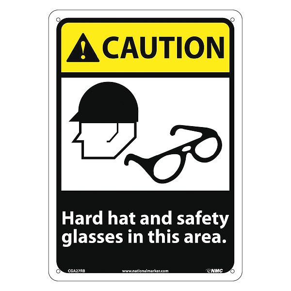 Nmc Caution Hard Hat And Safety Glasses In T, 14 in Height, Plastic, Rectangle, English CGA27RB