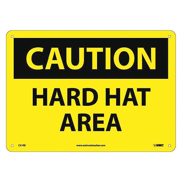 Caution Hard Hat Area Sign, 10in Height, 14in Width, Plastic, Rectangle