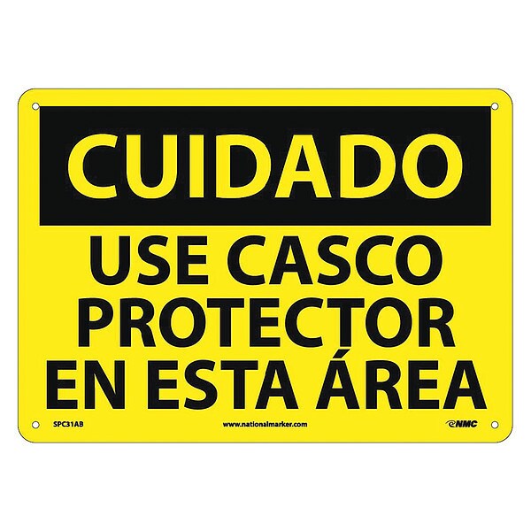 Caution Hard Hat Area Sign, Spanish, 10 in Height, 14 in Width, Aluminum (Discontinued)