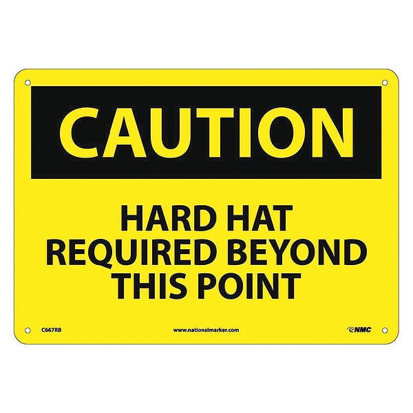 Caution Hard Hat Required Beyond This Po, 10 in Height, 14 in Width, Rigid Plastic