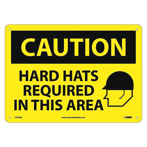 Caution Hard Hats Required In This Area, 10 in Height, 14 in Width, Aluminum