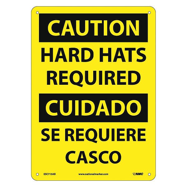 Caution Hard Hats Required Sign, Bilingua, 14 in Height, 10 in Width, Aluminum (Discontinued)