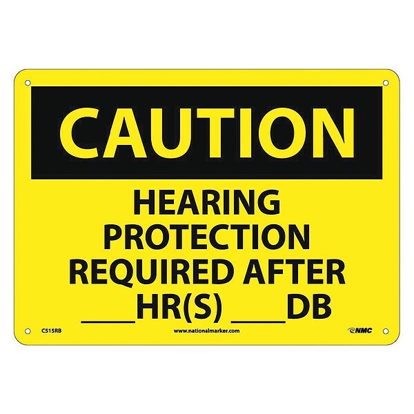 Caution Hearing Protection Required Sign, 10 in Height, 14 in Width, Rigid Plastic (Discontinued)
