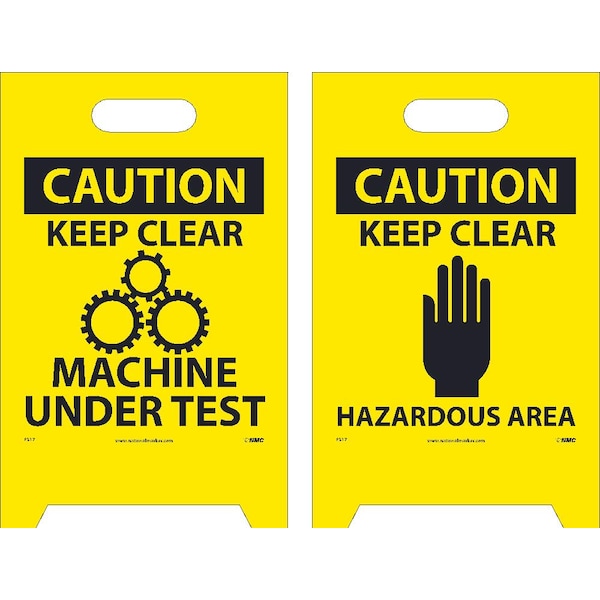 Caution Keep Clear Machine Under Test, 19 in Height, 12 in Width, Corrugated Plastic, A-Frame