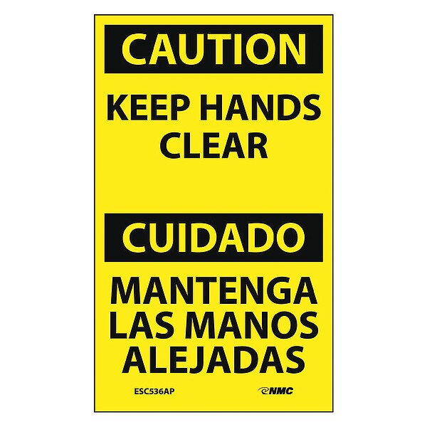 Caution Keep Hands Clear Bilingual Label, Pk5
