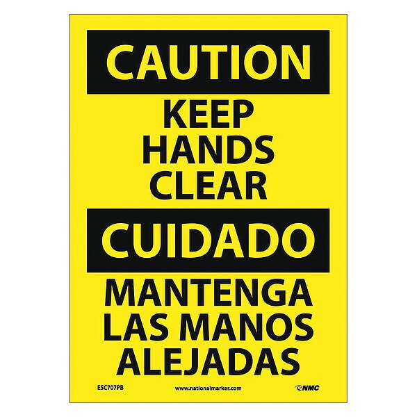 Caution Keep Hands Clear Sign, Bilingual, 14 in Height, 10 in Width, Pressure Sensitive Vinyl (Discontinued)