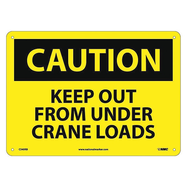 Caution Keep Out From Under Crane Loads, 10 in Height, 14 in Width, Rigid Plastic