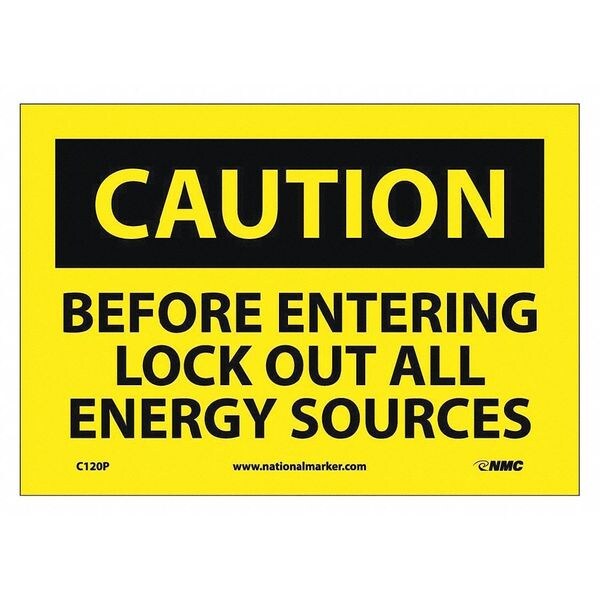 Caution Lock Out All Sources Sign, 7 in Height, 10 in Width, Pressure Sensitive Vinyl