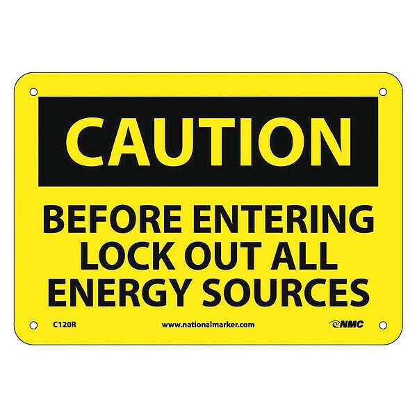 Caution Lock Out All Sources Sign, 7 in Height, Plastic, Rectangle, English