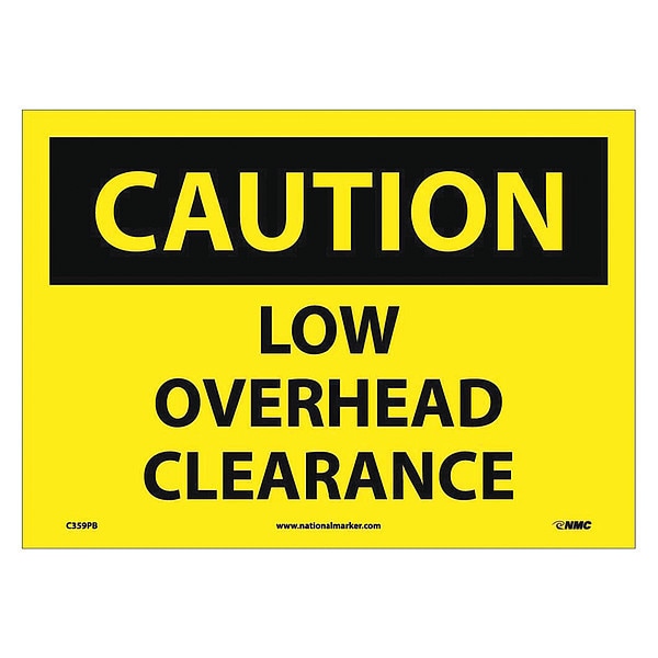 Caution Low Overhead Clearance Sign, 10 in Height, 14 in Width, Pressure Sensitive Vinyl