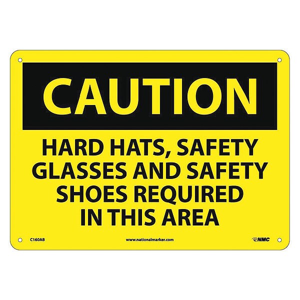 Caution Multi Protection Required Safety, 10 in Height, 14 in Width, Aluminum