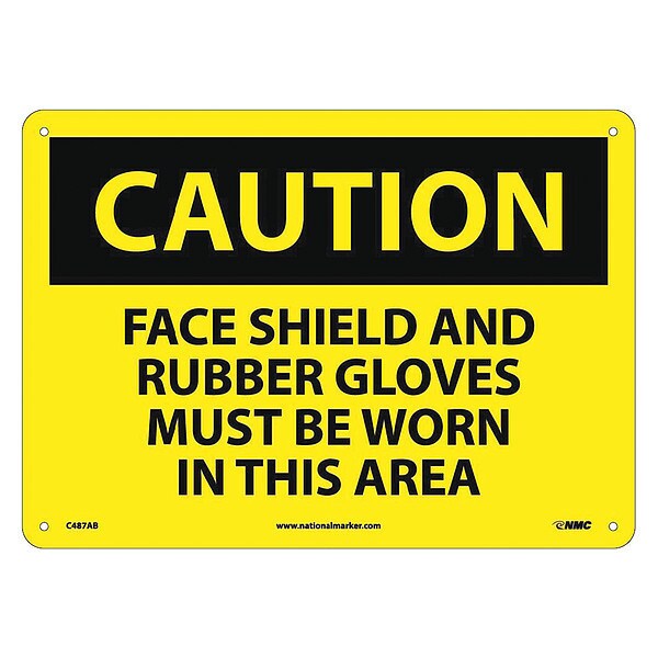 Nmc Caution Multi Protection Safety Sign, 10 in Height, 14 in Width, Aluminum C487AB