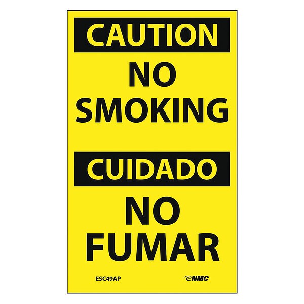Caution No Smoking Bilingual Label,PK5, Package Quantity 5