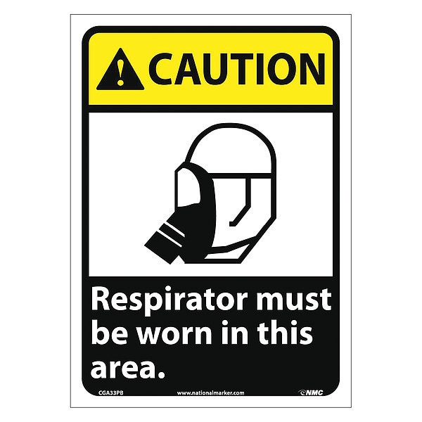 Caution Respirator Must Be Worn In This, 14in Height, 10in Width, Vinyl, Rectangle