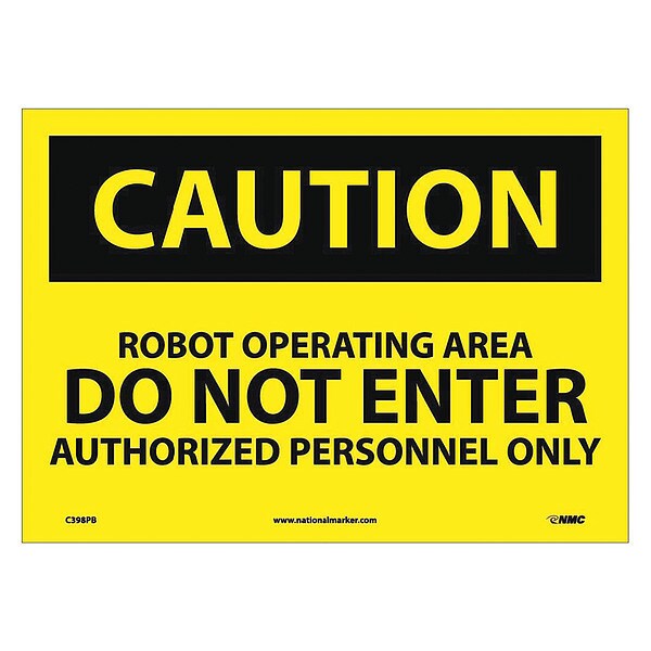 Caution Robot Operating Area Do Not Ente, 10 in Height, 14 in Width, Pressure Sensitive Vinyl
