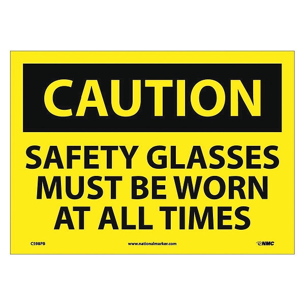 Caution Safety Glasses Must Be Worn At All Times Sign (Discontinued)