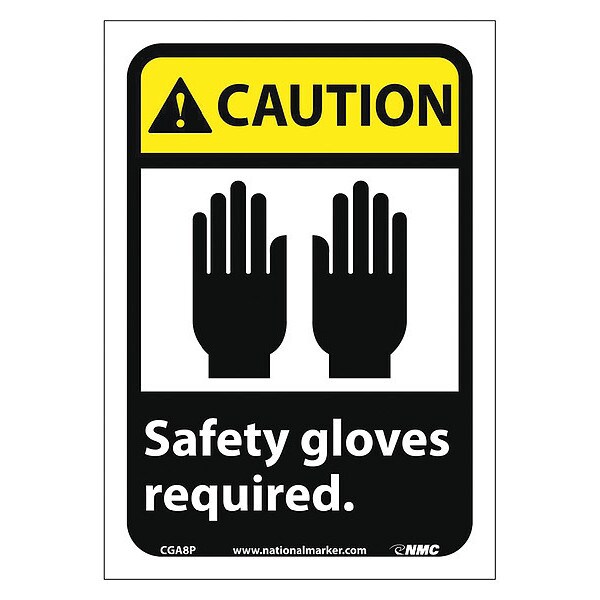 Caution Safety Gloves Required Sign, 10 in Height, Vinyl, Rectangle, English