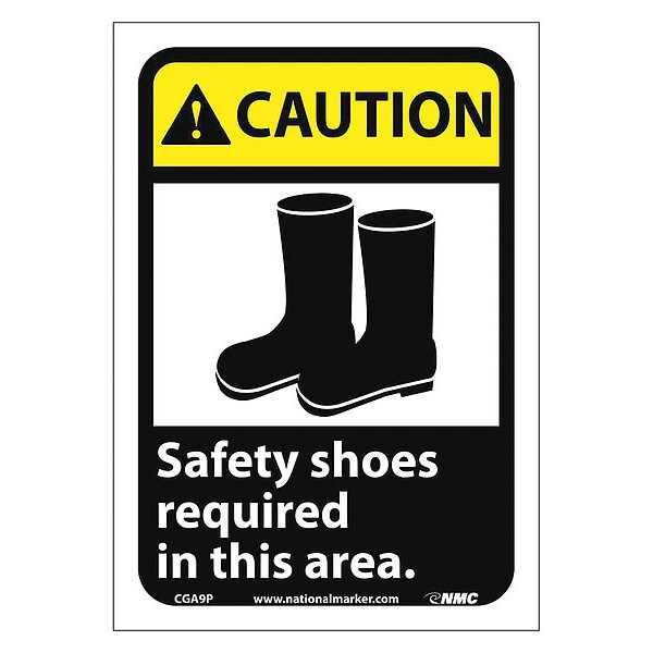 Caution Safety Shoes Required In This Ar, 10 in Height, 7 in Width, Vinyl, Rectangle, English