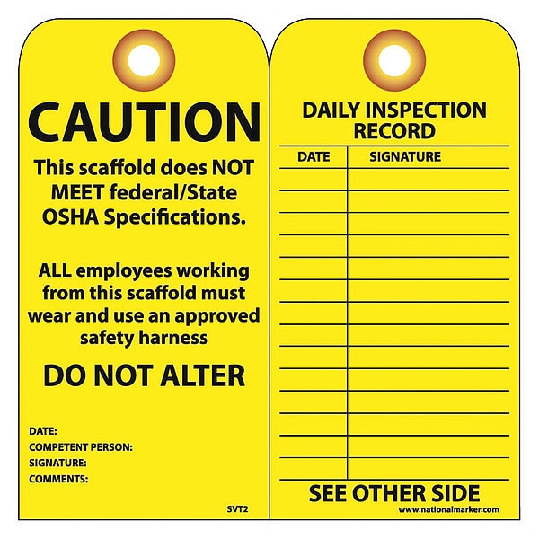 Caution Scaffold Does Not Meet Federal/State Osha Specs Tag, Pk25